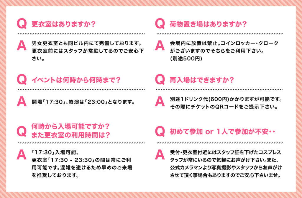 - 男女更衣室・クローク完備!コスプレで入場可!